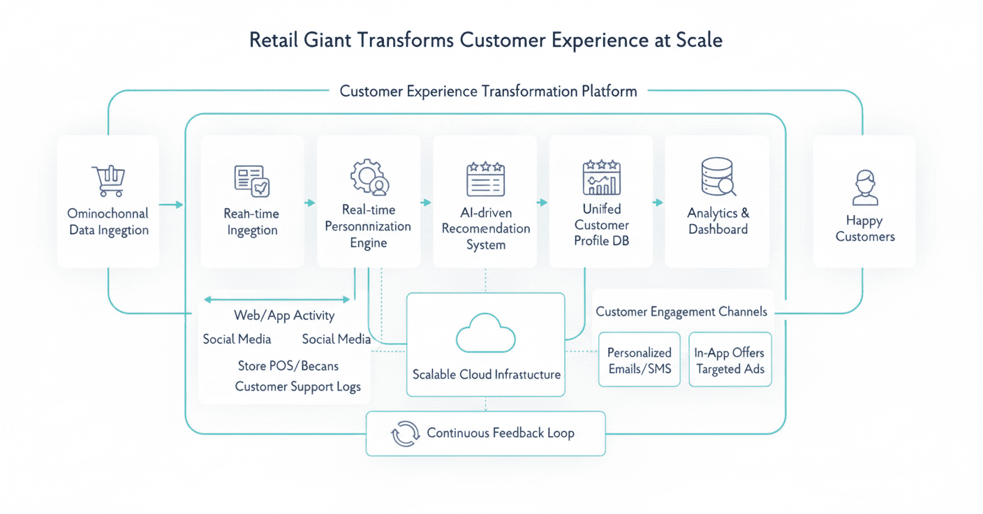 The client needed a way to ingest millions of data points—from clickstreams to inventory levels—and deliver a hyper-personalized response in milliseconds.